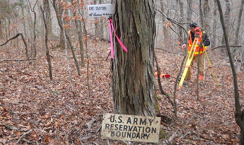 GRW has completed several boundary survey projects at Fort Knox for the U.S. Army Corps of Engineers, Louisville District. Fort Knox is a U.S. Army post located approximately 35 miles South of Louisville, Kentucky and encompasses 109,000 acres across three counties. Over the years, GRW has surveyed the following boundary lengths at Fort Knox: 4.5 miles in 2011 at Otter Creek; 10.4 miles in 2012; 6.9 miles in 2013; and 4.5 miles to be surveyed in 2014.